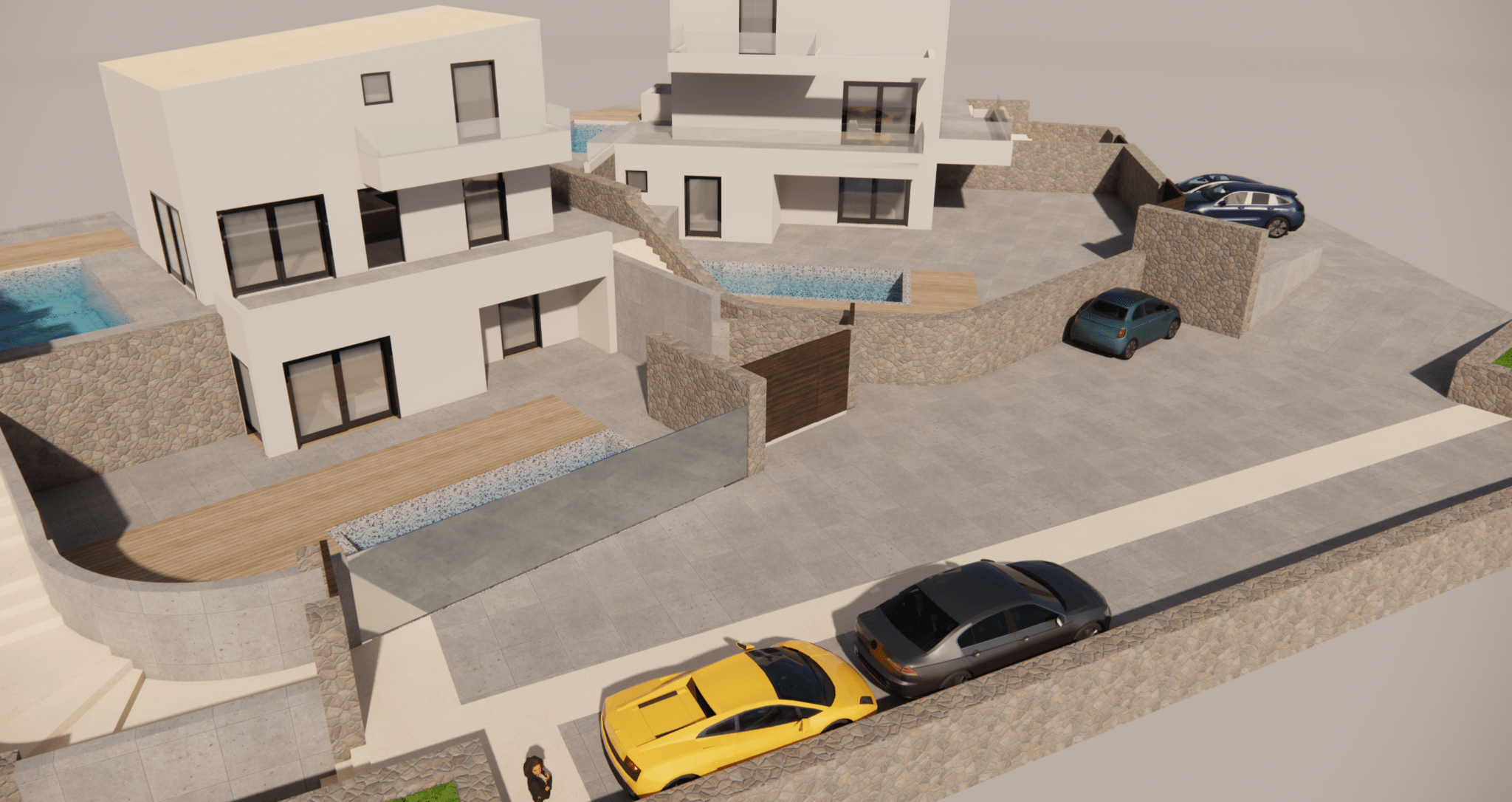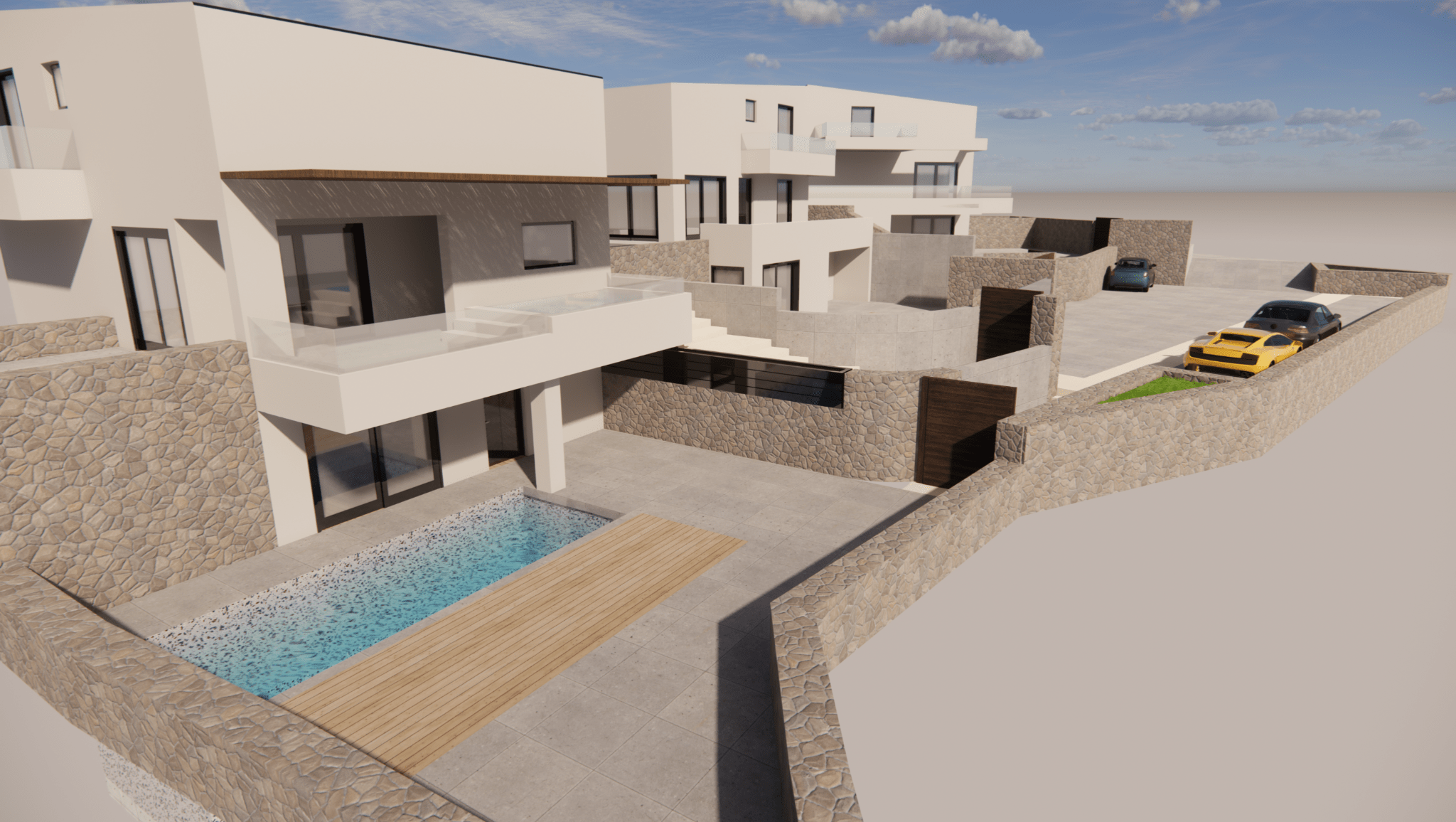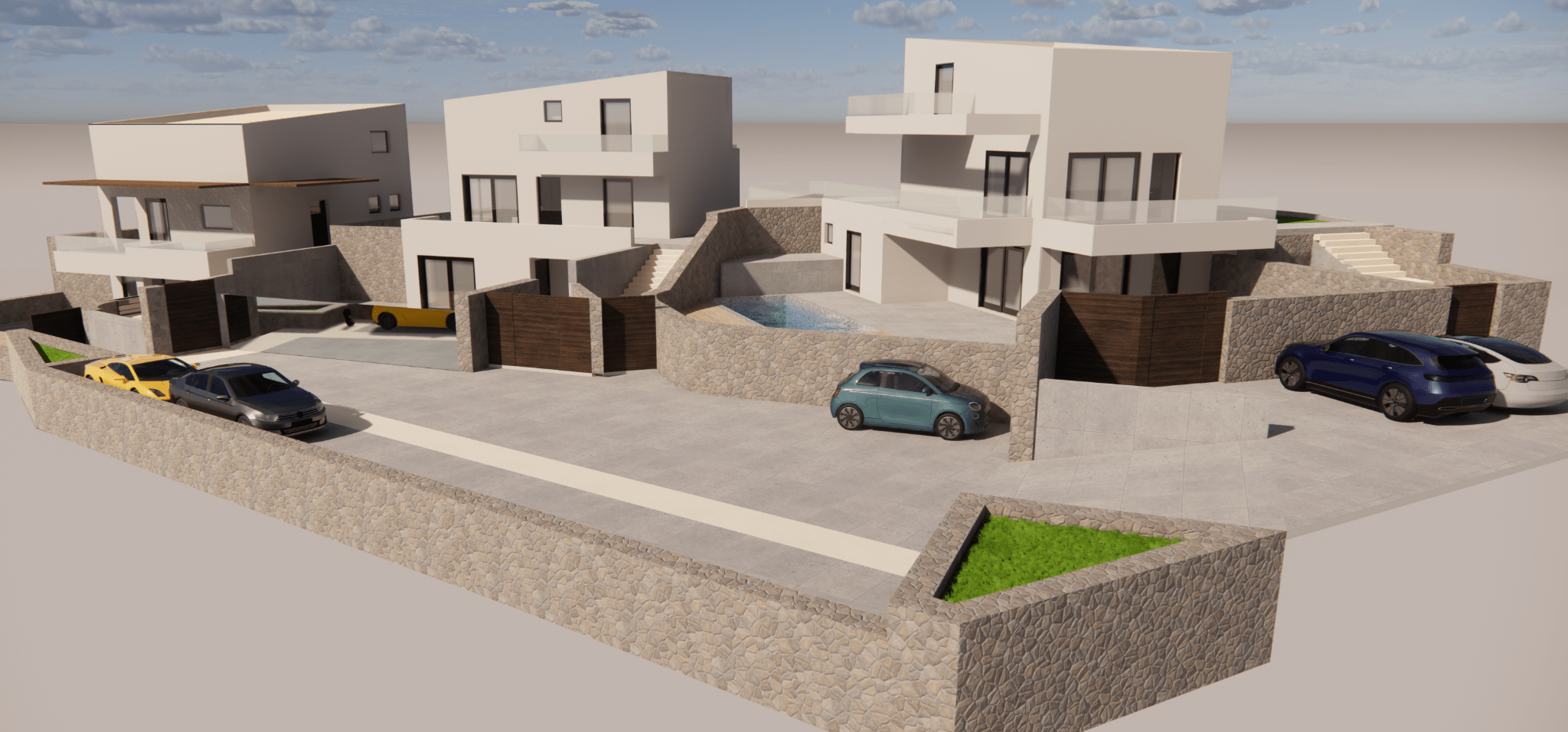 Το έργο αφορά την κατασκευή συγκροτήματος έξι κατοικιών, κατανεμημένων σε τρία ανεξάρτητα κτίρια. Κάθε διαμέρισμα σχεδιάζεται με πλήρη ιδιωτικότητα, με ιδιωτική πισίνα, ανεξάρτητη είσοδο και χώρους στάθμευσης. Η αρχιτεκτονική σύνθεση χαρακτηρίζεται από μοντέρνα, αιγαιοπελαγίτικη διάθεση, με λευκούς όγκους, φυσικά υλικά και αρμονία με το ανάγλυφο της περιοχής.